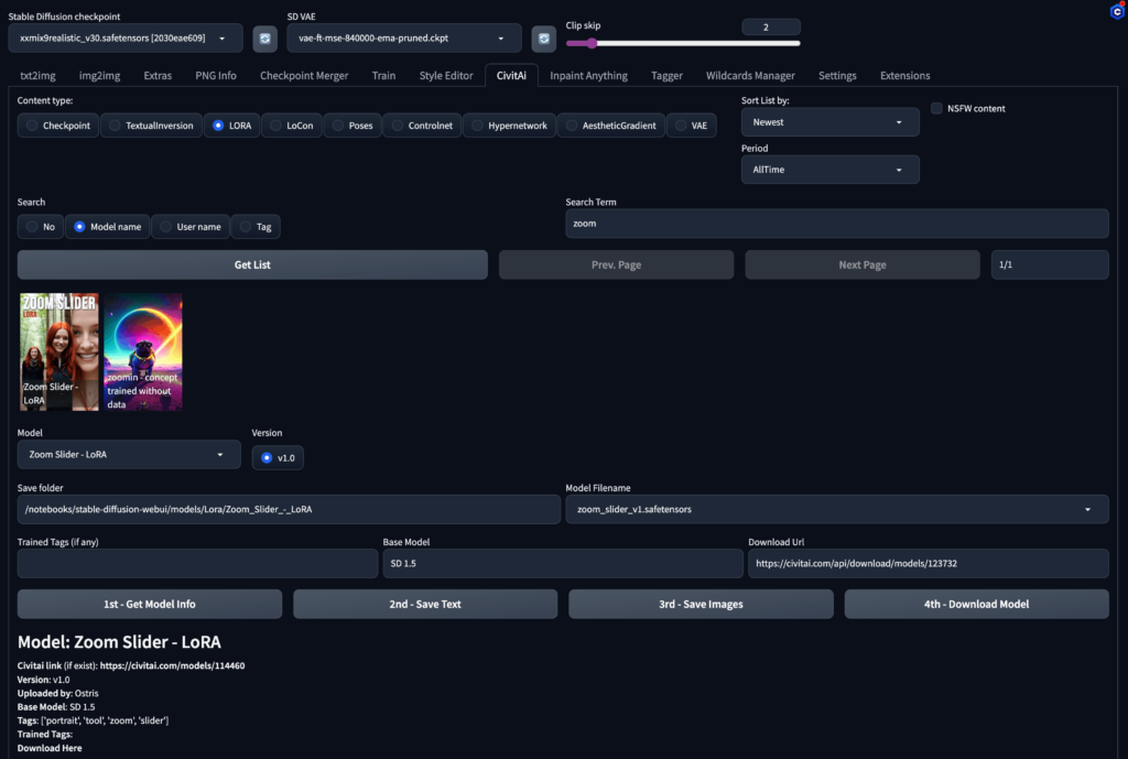 とにかく、WebUIを離れることなくCivitAIでの検索やダウンロードが出来るのと、モデル、LoRAのメモ、画像も同じくダウンロードできるので非常に便利です。