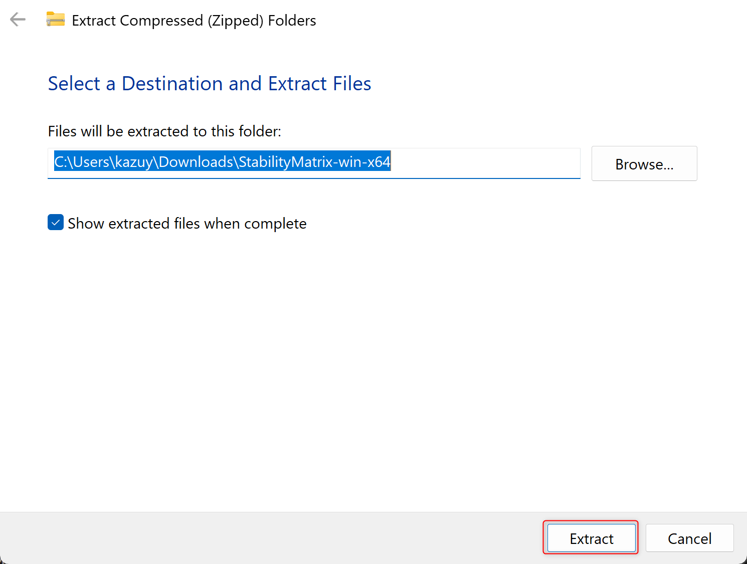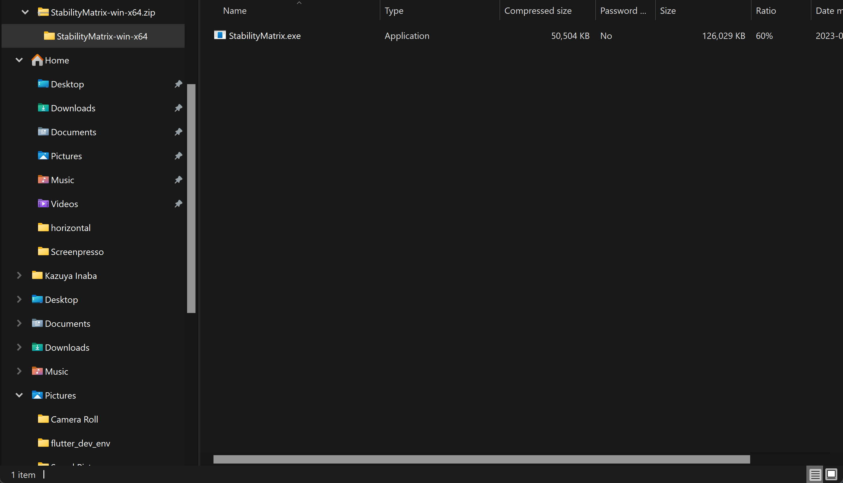 「StabilityMatrix.exe」も圧縮ファイルですので、ダブル・クリックすると解凍するかと聞かれます。