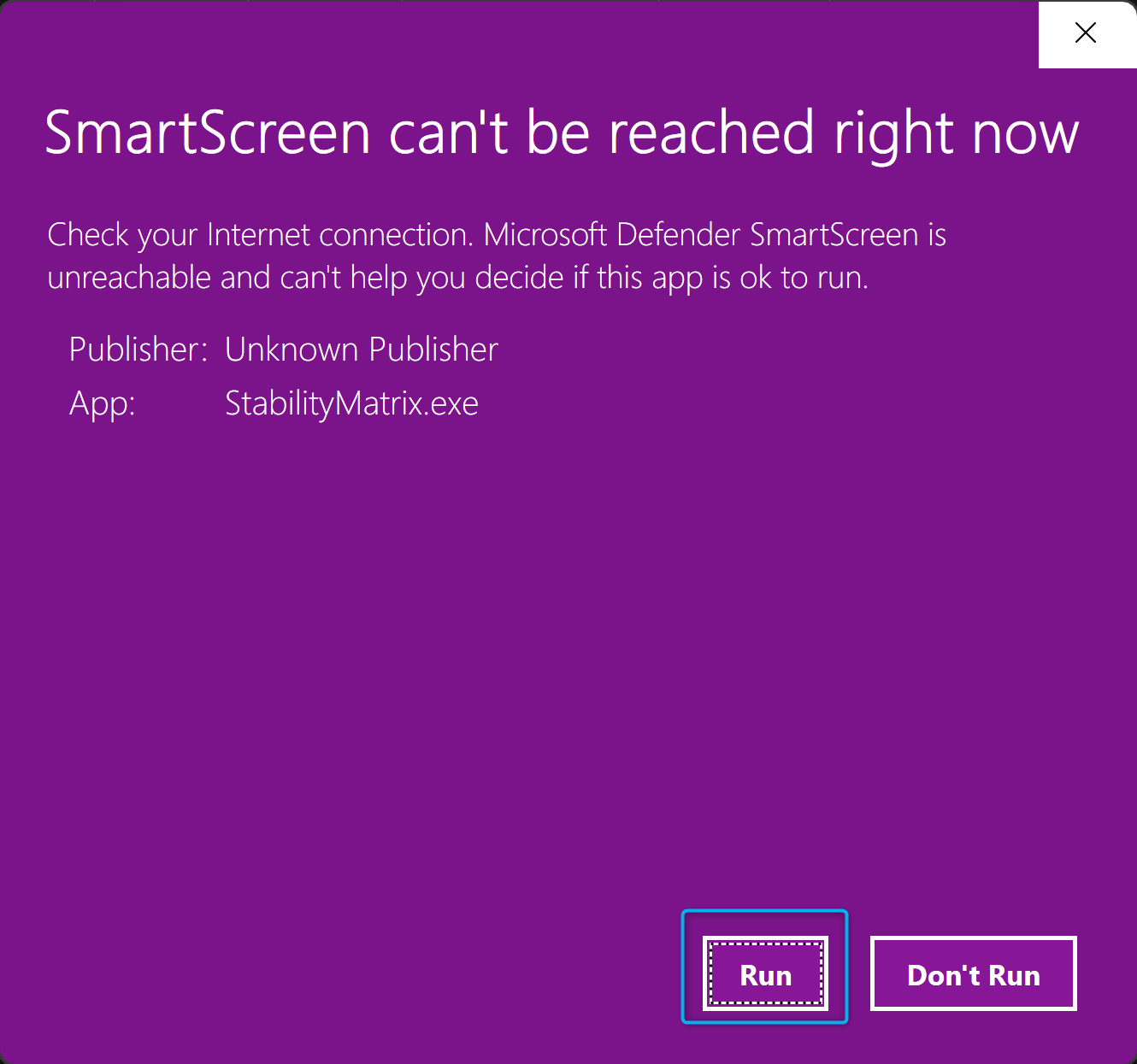 Windows Defender Smartscreenで実行が止まった場合には、「Run」ボタンをクリックして続けます。