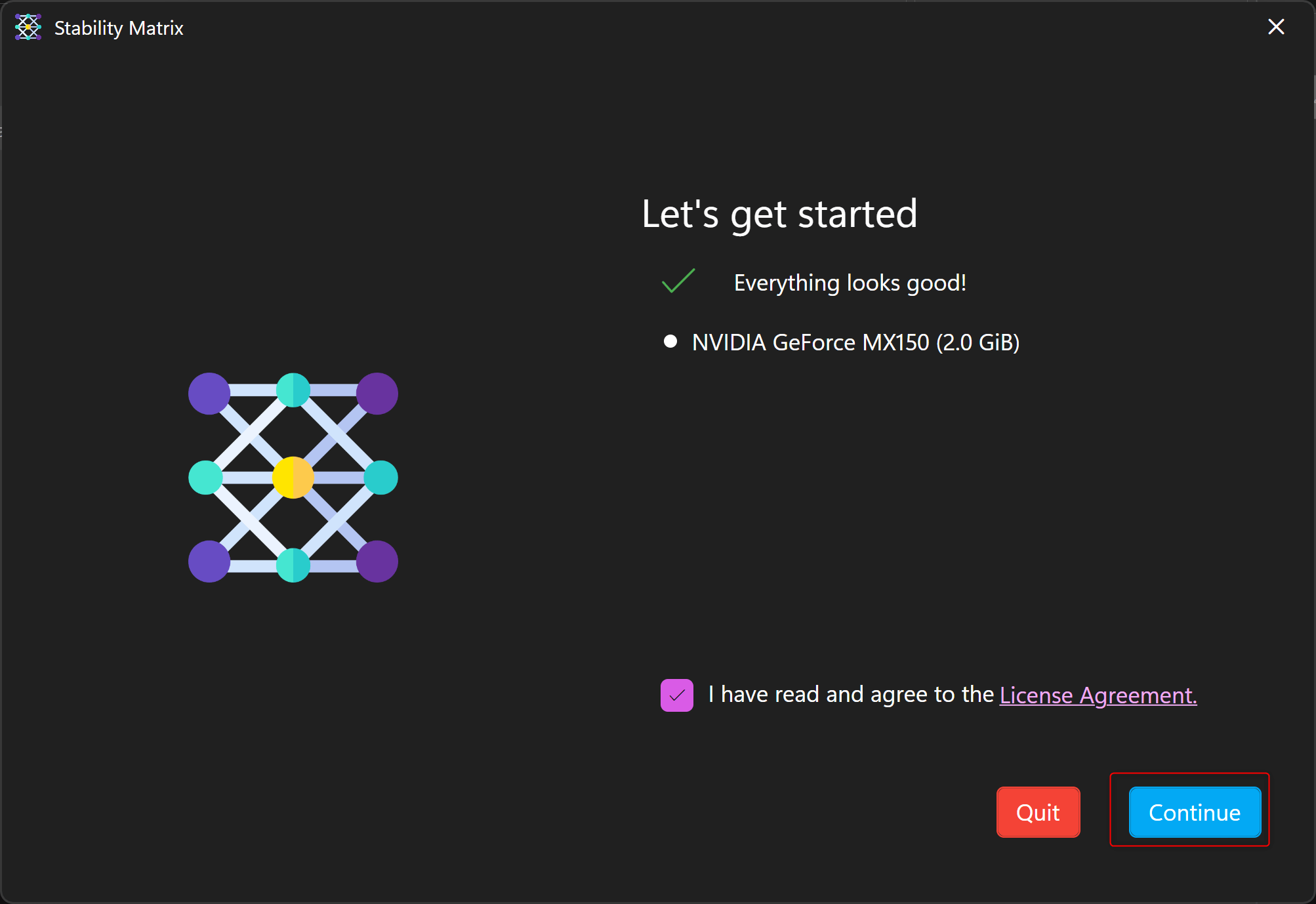 通常は、StabilityMatrixインストール時に別ウィンドウでインストールしてください。