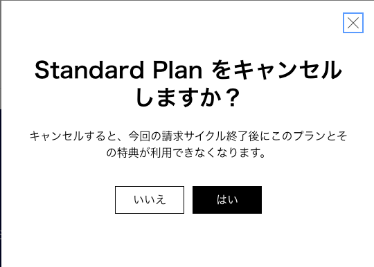 キャンセルの確認が表示されますので、「はい」をクリックします。