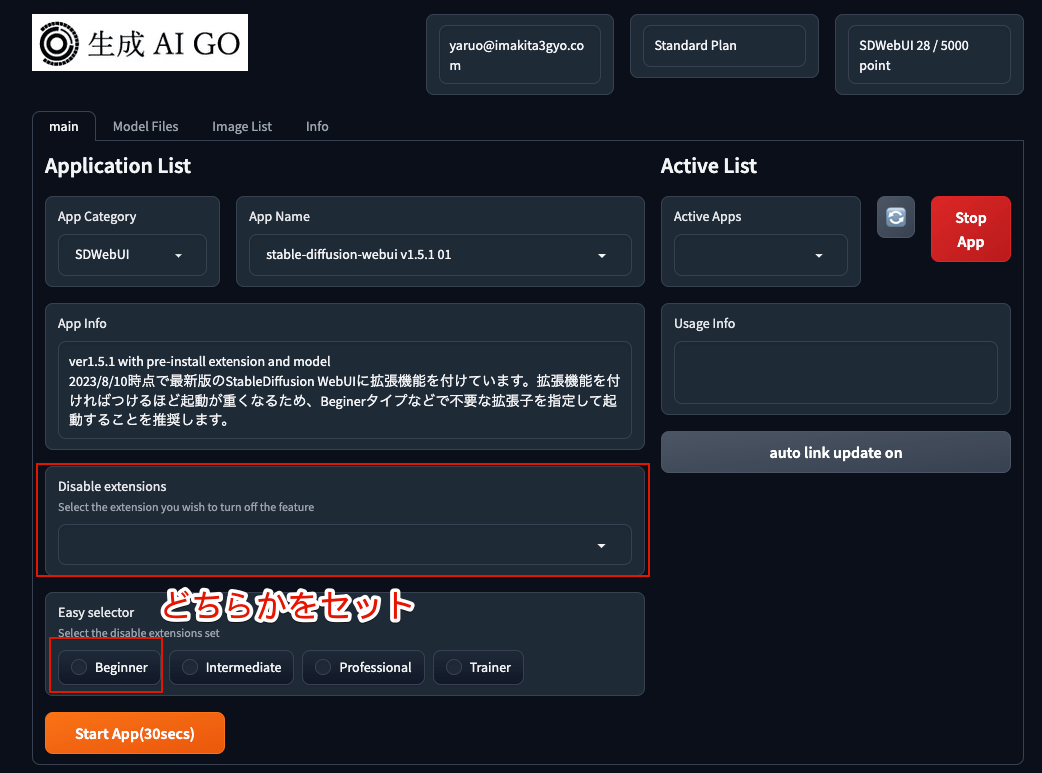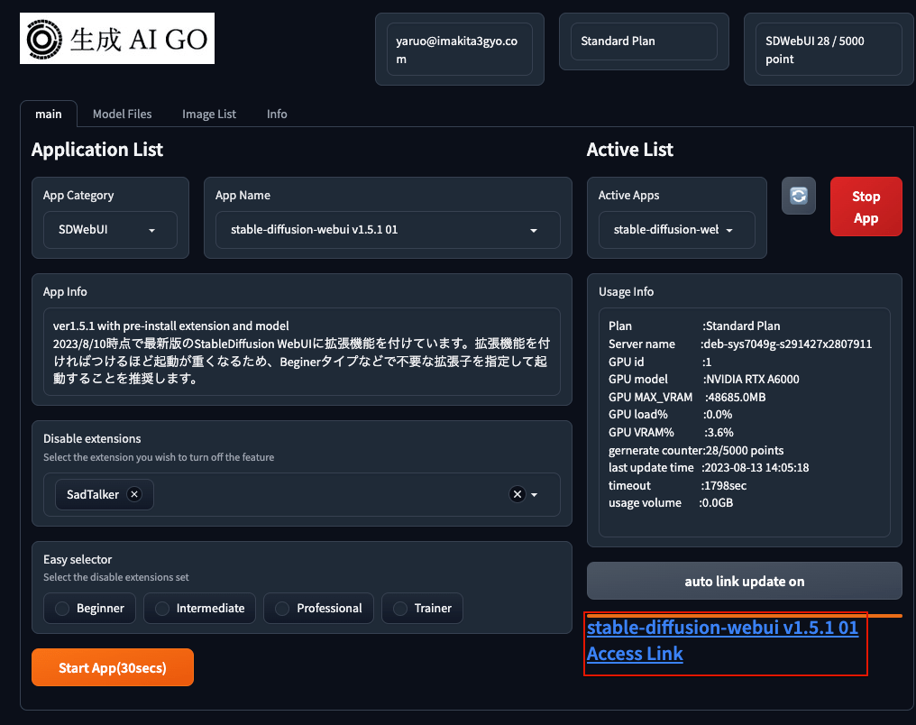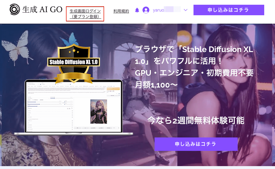 「生成AI GO」は、株式会社フューチャースタンダードが提供している生成AIサービスでStable Diffusion WebUIが中心となります。