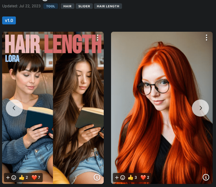 このLoRAを使うと、重み付けで髪の長さが変わります。