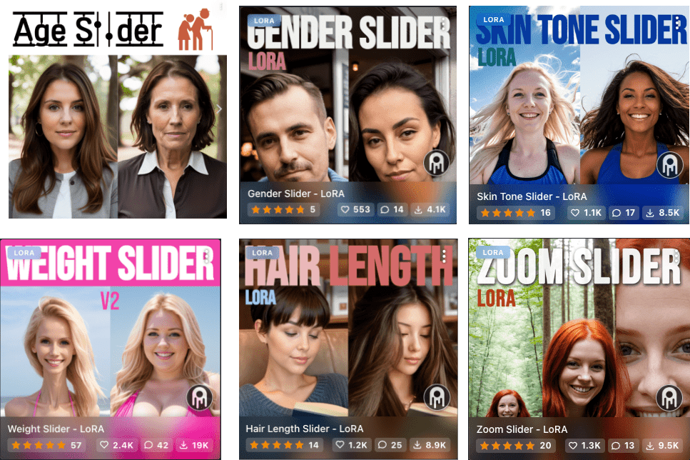 今回は、CivitAIにある「Slider」と名前のつくものを試しました。