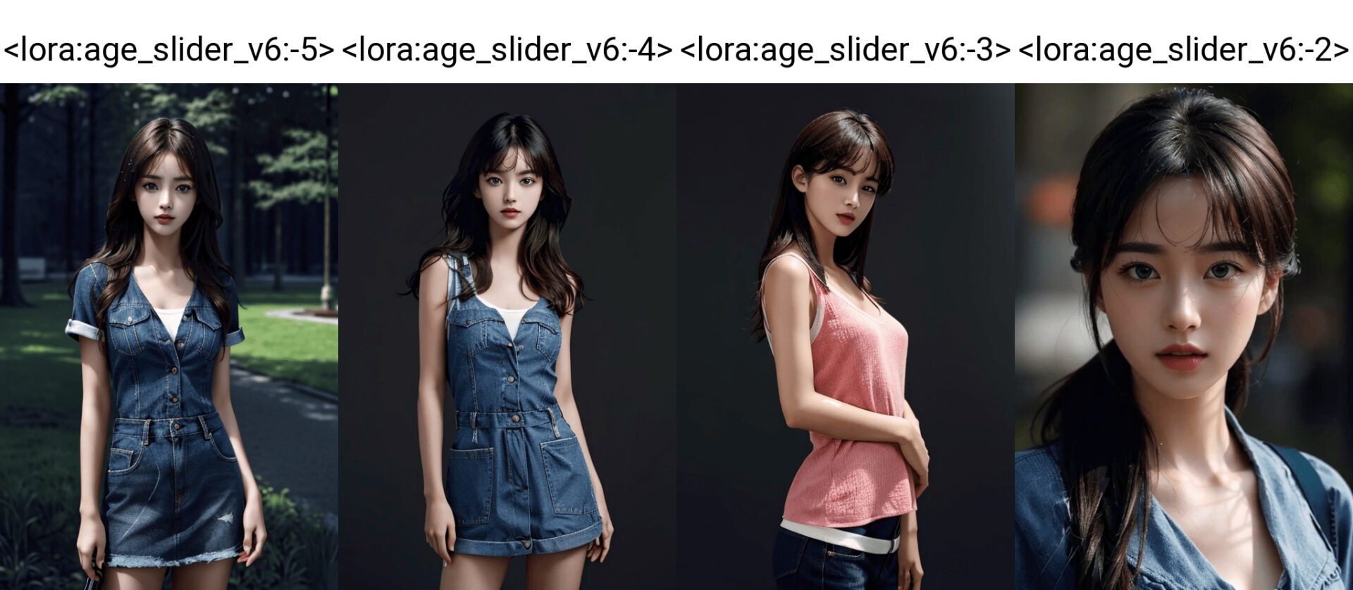 LoRAの重み付けは、詳細ページにありませんが、X/Y/Z Plotで-5.0〜5.0の画像があります。